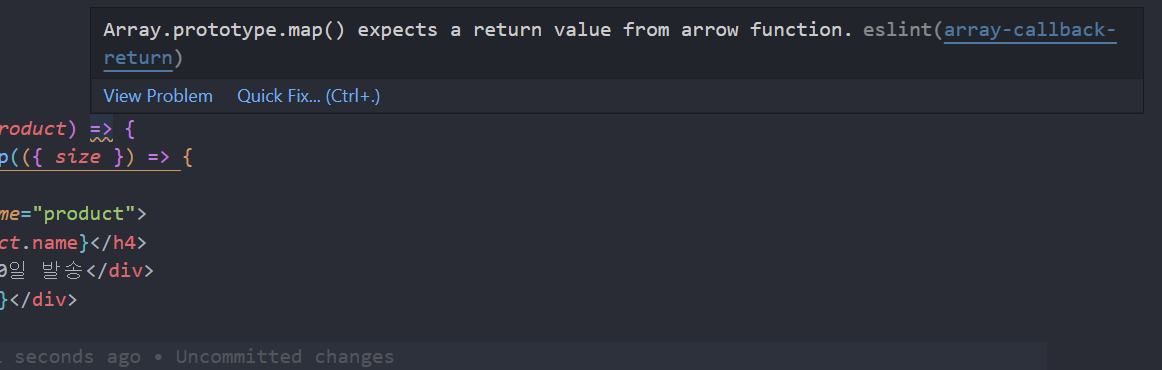 => arrow function에 마우스를 지긋이 올려다 놓으면 경고를 확인할 수 있는데 이를 절대 무시하지 말자